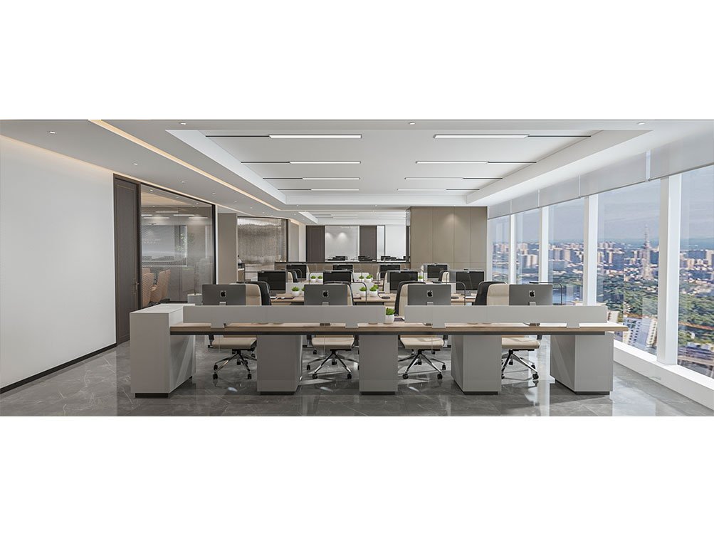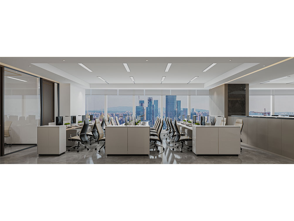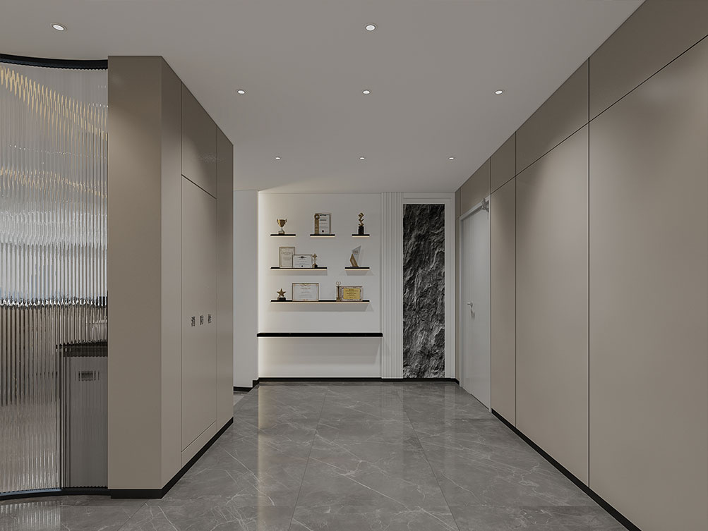 風(fēng)順集團(tuán)裝修效果以 “大氣沉穩(wěn) + 現(xiàn)代高效” 為核心,整體采用深灰、米白為主色調(diào)搭配金屬線條點(diǎn)綴,凸顯企業(yè)質(zhì)感。前臺(tái)接待區(qū)用大理石背景墻嵌入集團(tuán) LOGO,搭配簡(jiǎn)約大氣的接待臺(tái)與藝術(shù)擺件,營(yíng)造專業(yè)第一印象;濟(jì)南辦公室裝修為開(kāi)放辦公區(qū)采用模塊化工位設(shè)計(jì),配備獨(dú)立收納與人體工學(xué)座椅,墻面穿插集團(tuán)發(fā)展歷程掛畫與綠植,兼顧高效與舒適;會(huì)議室按規(guī)模配置高清會(huì)議系統(tǒng)與吸音材質(zhì),滿足不同商務(wù)需求;同時(shí)預(yù)留休閑茶水區(qū)與榮譽(yù)展示墻,既方便員工放松,也直觀傳遞企業(yè)實(shí)力,整體空間兼具品牌形象與實(shí)用功能。